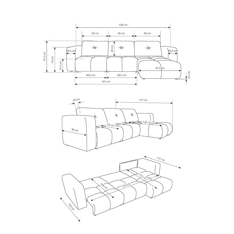 - Funkcja spania – rozkładana sofa jest idealna jako mebel wypoczynkowy w dzień i jako łóżko dla gości w nocy.