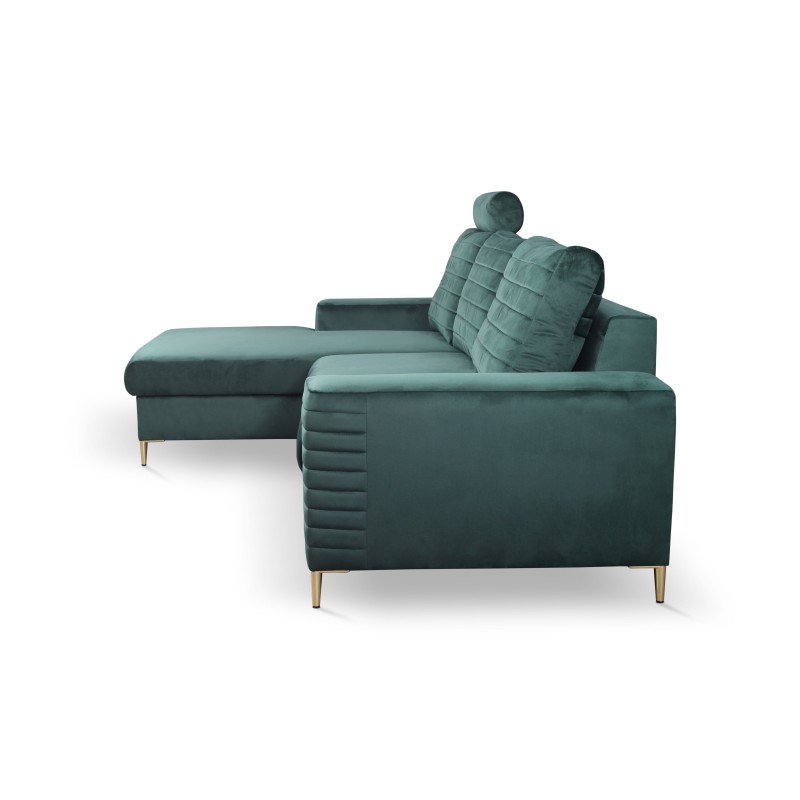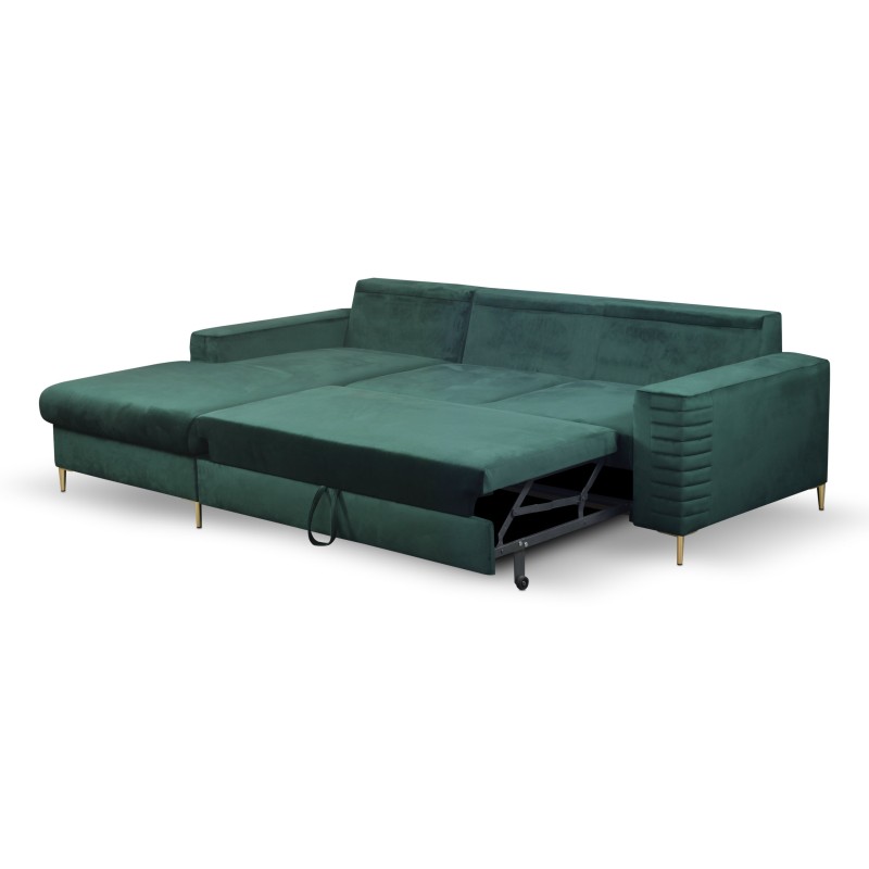 Masseno Narożnik GRIFO z funkcją spania i pojemnikiem na pościel, Rozkładana sofa - Zielony, VELLUTO JUNGLE GREEN 27