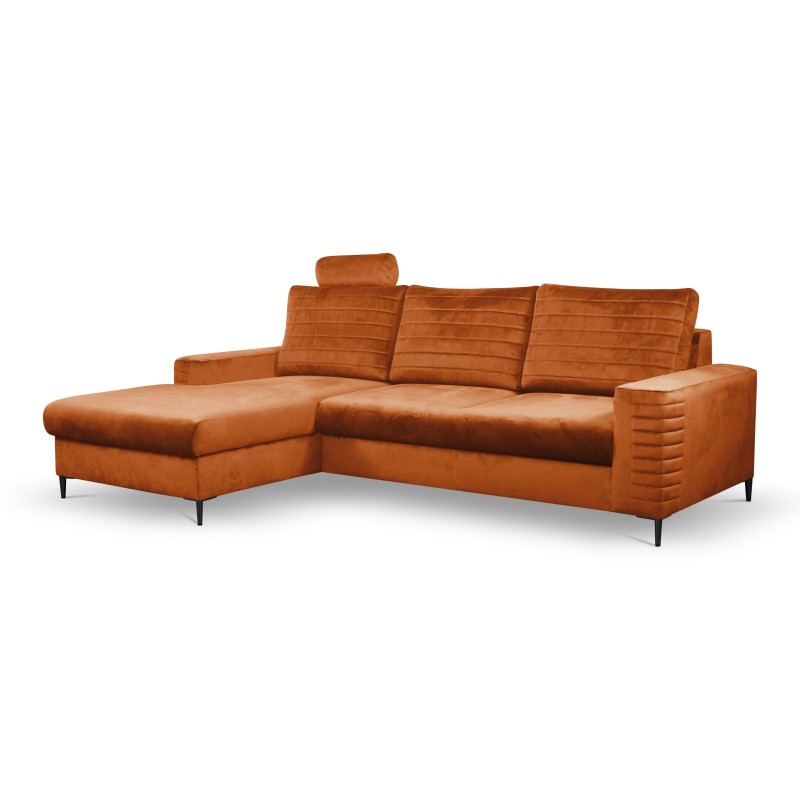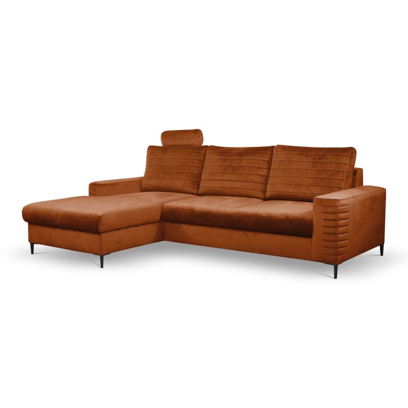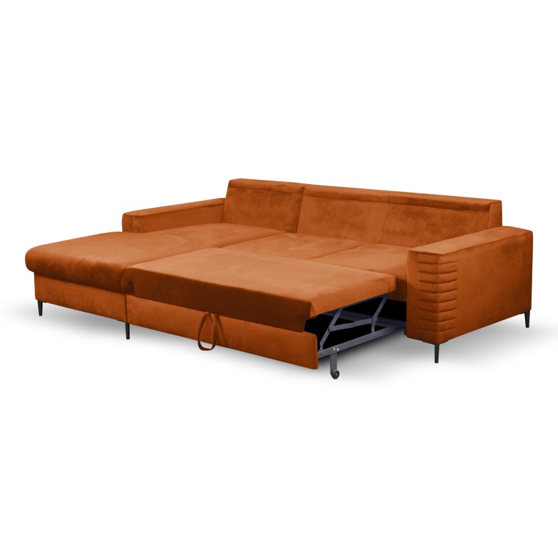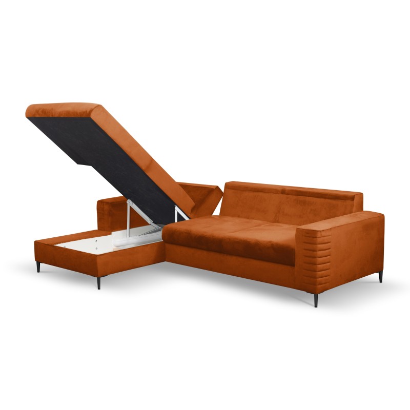 Masseno Narożnik GRIFO z funkcją spania i pojemnikiem na pościel Narozniki L, Rozkładana sofa - Brązowy, VELLUTO RUST 33