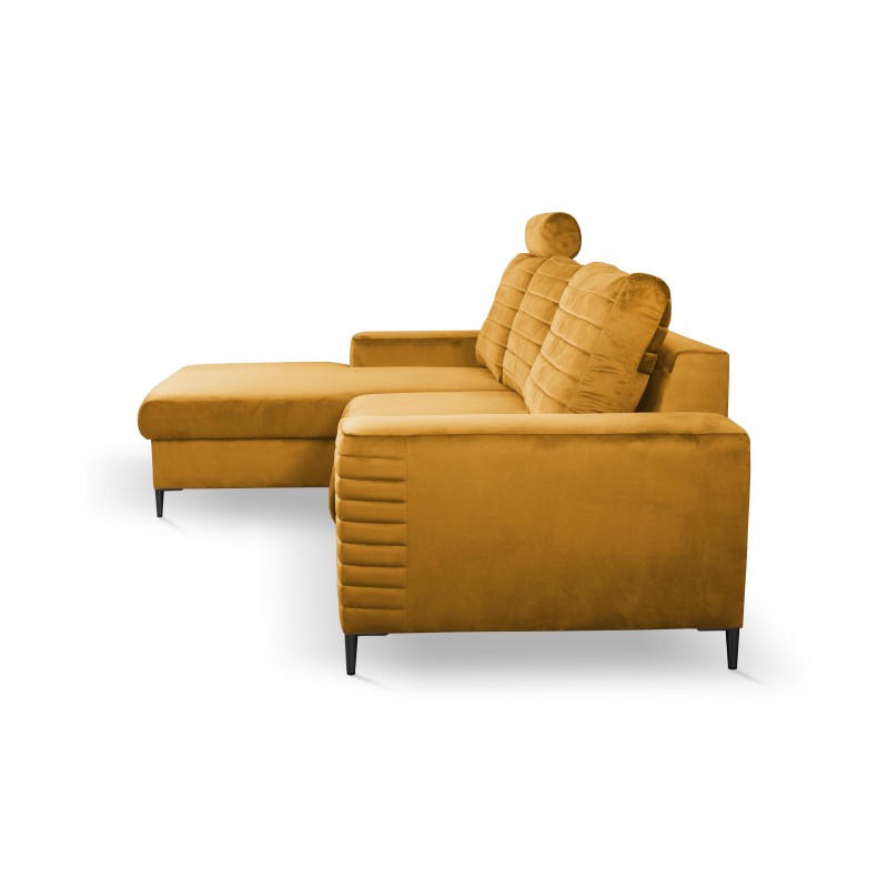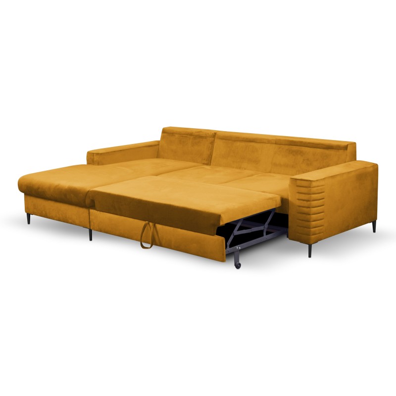 Masseno Narożnik GRIFO z funkcją spania i pojemnikiem na pościel Narozniki L, Rozkładana sofa - Żółty, VELLUTO MUSTARD 8