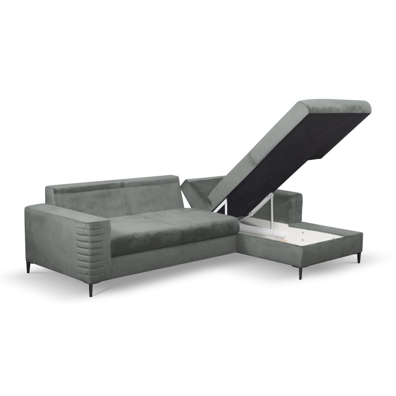 Masseno Narożnik GRIFO z funkcją spania i pojemnikiem na pościel Narozniki L, Rozkładana sofa - Szary, VELLUTO GREY 16