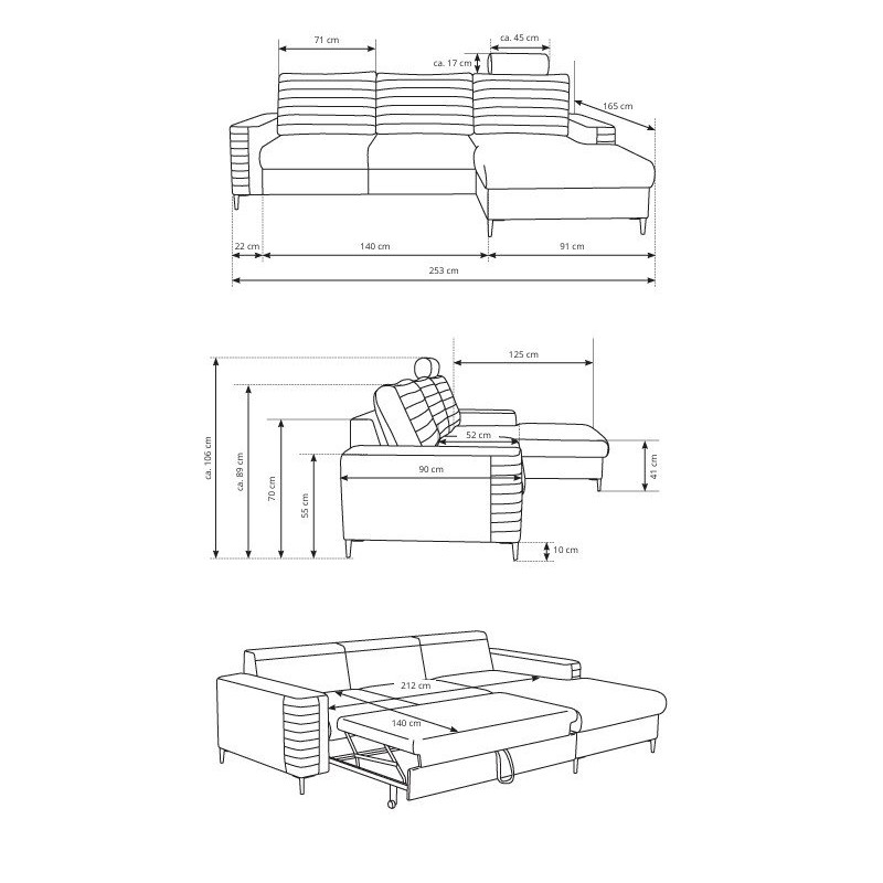 - Funkcja spania – rozkładana sofa jest idealna jako mebel wypoczynkowy w dzień i jako łóżko dla gości w nocy.