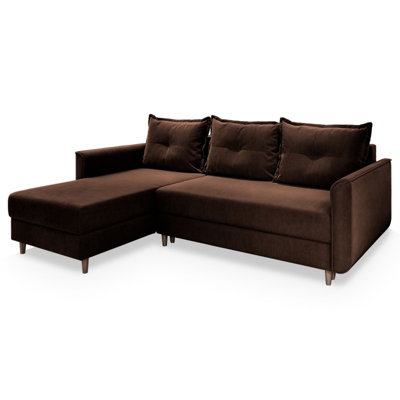 Masseno Narożnik PISAN z funkcją spania i pojemnikiem na pościel Narozniki L, Rozkładana sofa - Brązowy, KRONOS 06