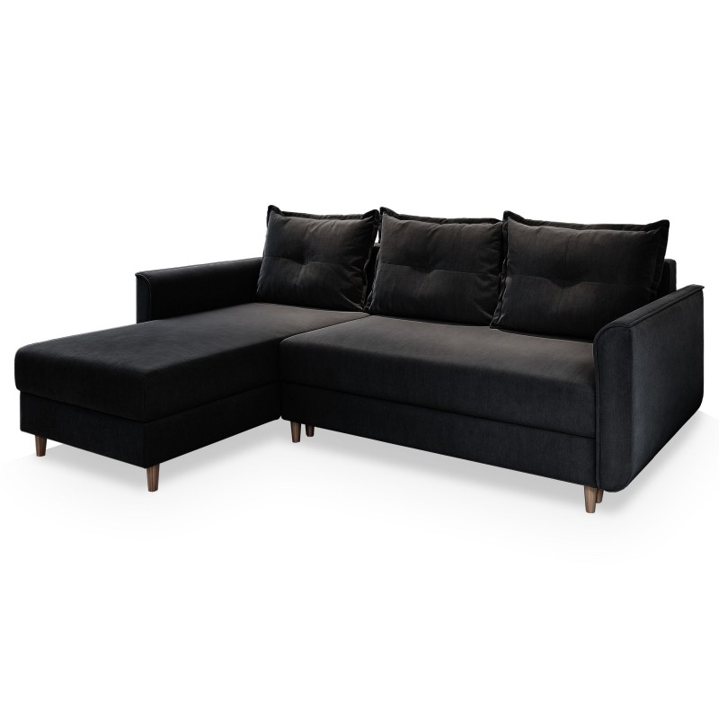 Masseno Narożnik PISAN z funkcją spania i pojemnikiem na pościel Narozniki L, Rozkładana sofa - Czarny, KRONOS 07