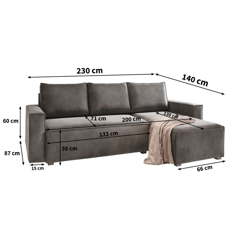 Masseno Narożnik SILES z funkcją spania i pojemnikiem na pościel Narozniki L, Rozkładana sofa - Kremowy, MONOLITH 04