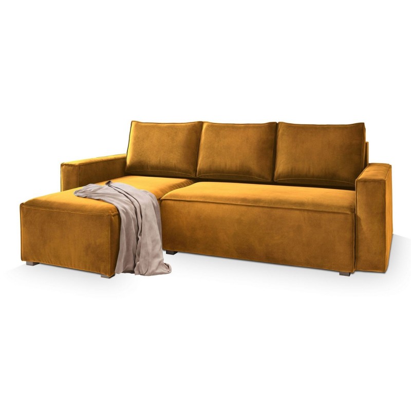 Masseno Narożnik SILES z funkcją spania i pojemnikiem na pościel Narozniki L, Rozkładana sofa - Żółty, MONOLITH 48