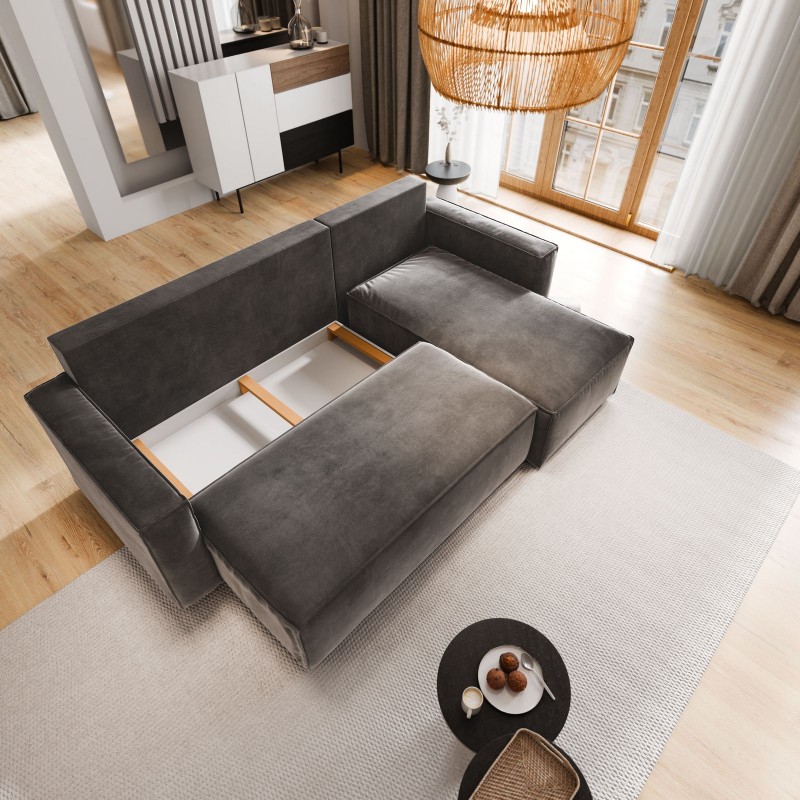 Masseno Narożnik SILES z funkcją spania i pojemnikiem na pościel Narozniki L, Rozkładana sofa - Niebieski, MONOLITH 77