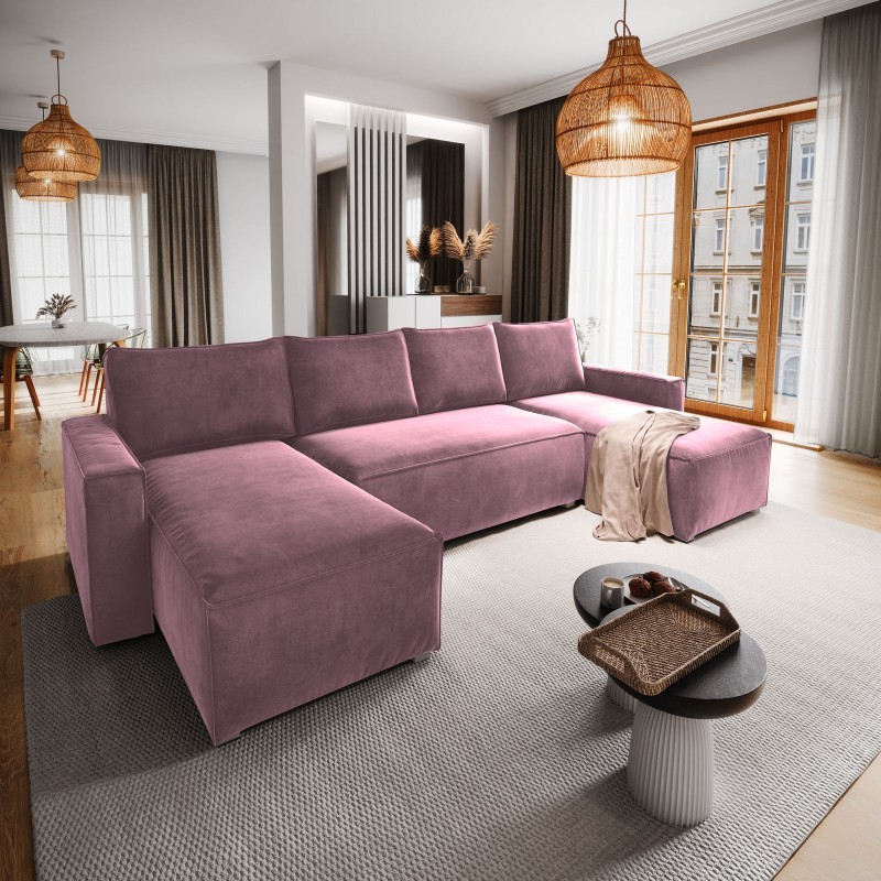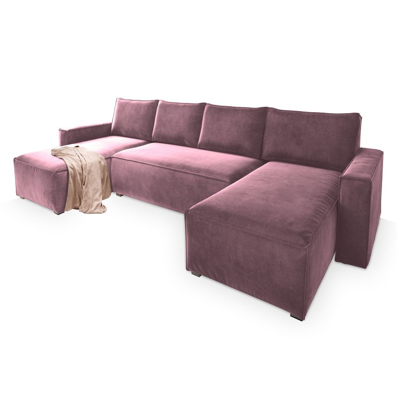 Masseno Narożnik DENI z funkcją spania i pojemnikiem na pościel Narozniki U, Rozkładana sofa - Wrzosowy, MONOLITH 62
