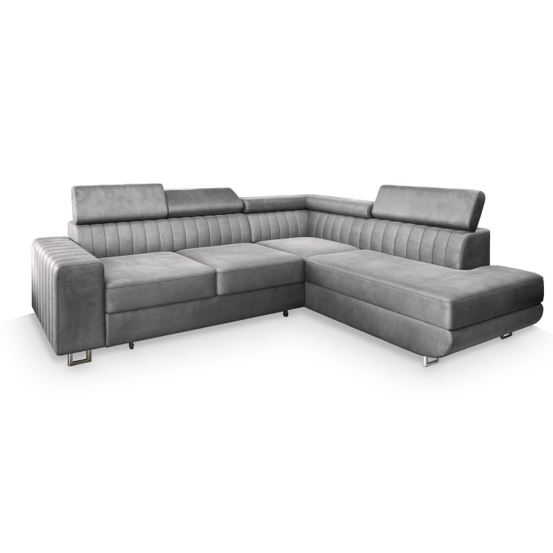 Masseno Narożnik NOLA z funkcją spania i pojemnikiem na pościel Narozniki L, Rozkładana sofa - Jasnoszary, MONOLITH 84