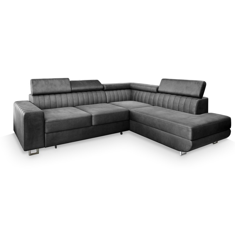 Masseno Narożnik NOLA z funkcją spania i pojemnikiem na pościel Narozniki L, Rozkładana sofa - Szary, MONOLITH 85