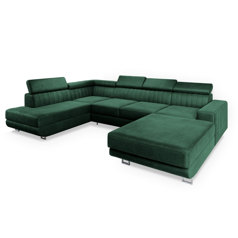 Masseno Narożnik SIENA z funkcją spania i pojemnikiem na pościel Narozniki U, Rozkładana sofa - Butelkowa zieleń, MONOLITH 37