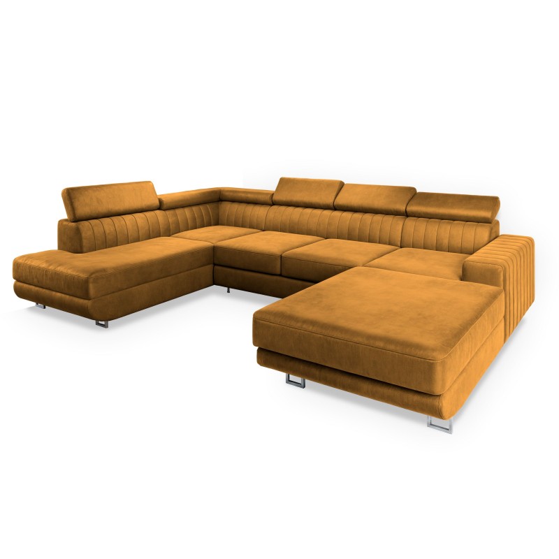 Masseno Narożnik SIENA z funkcją spania i pojemnikiem na pościel Narozniki U, Rozkładana sofa - Żółty, MONOLITH 48