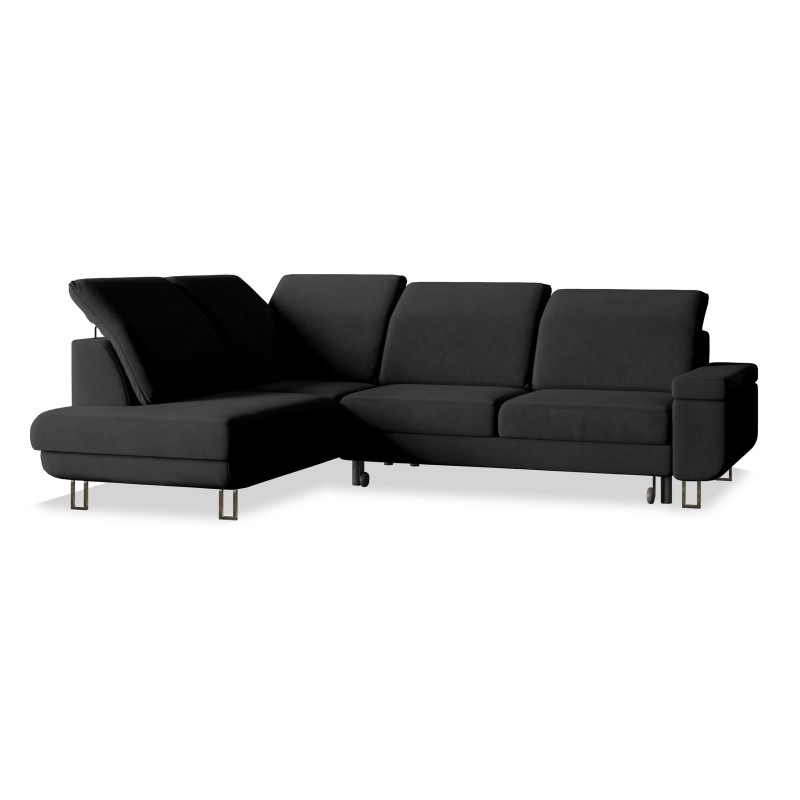 Masseno Narożnik LERMA z funkcją spania i pojemnikiem na pościel Narozniki L, Rozkładana sofa - Czarny, MONOLITH 95