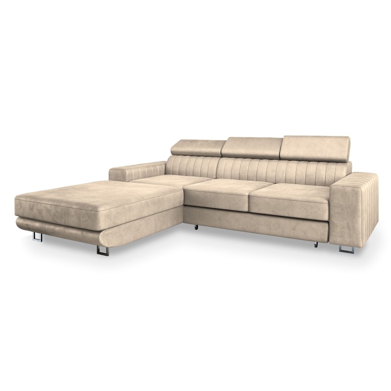 Masseno Narożnik NOTO z funkcją spania i pojemnikiem na pościel Narozniki L, Rozkładana sofa - Kremowy, MONOLITH 04
