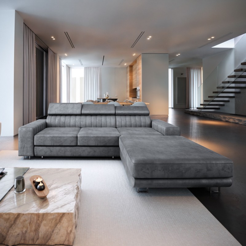 Masseno Narożnik NOTO z funkcją spania i pojemnikiem na pościel Narozniki L, Rozkładana sofa - Szary, MONOLITH 85