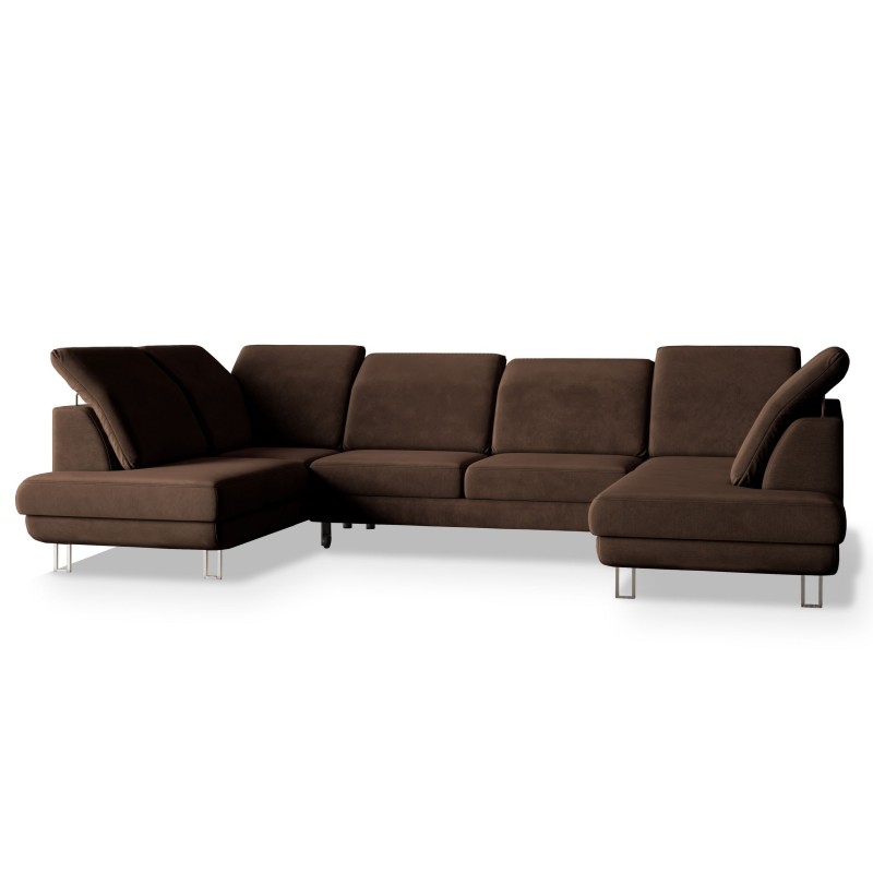 Masseno Narożnik TERAMO z funkcją spania i pojemnikiem na pościel Narozniki U, Rozkładana sofa - Brązowy, MONOLITH 29
