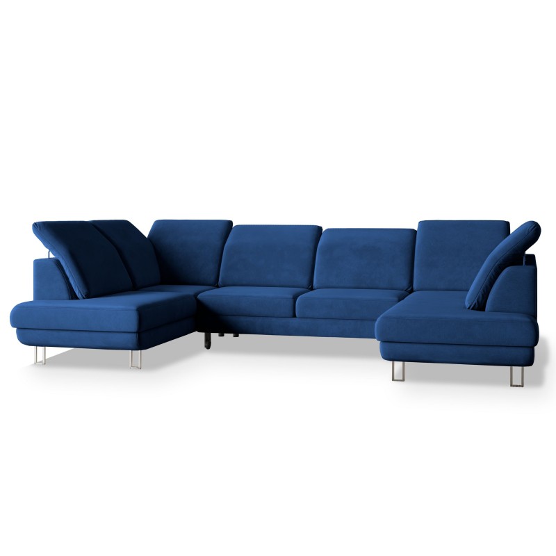 Masseno Narożnik TERAMO z funkcją spania i pojemnikiem na pościel Narozniki U, Rozkładana sofa - Niebieski, MONOLITH 77