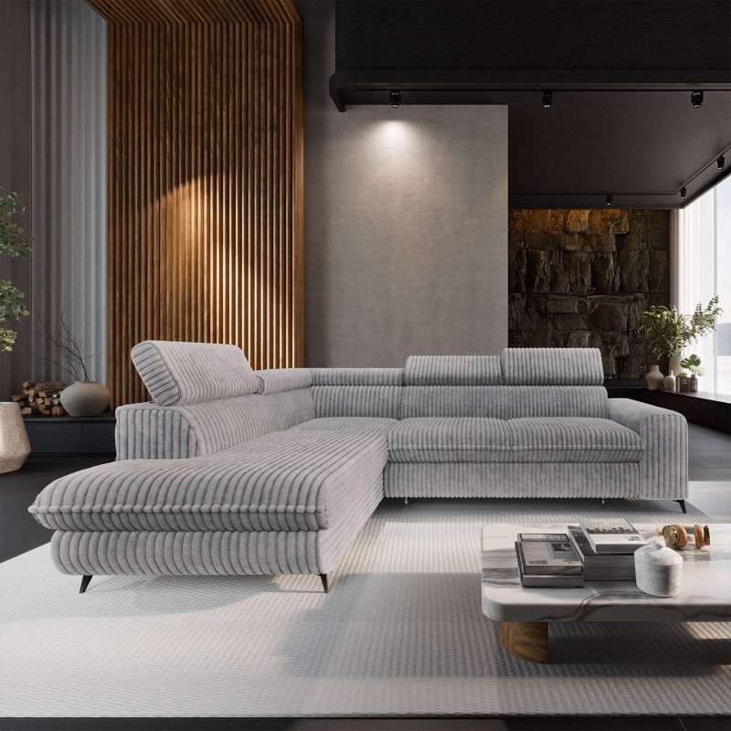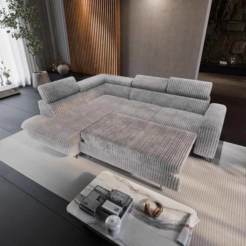 Masseno Narożnik VELISS z funkcją spania i pojemnikiem na pościel Rozkładana sofa do Salonu - Jasnoszary, TILIA 86