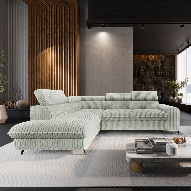Masseno Narożnik VELISS z funkcją spania i pojemnikiem na pościel Rozkładana sofa do Salonu - Jasnoszary, TILIA 83
