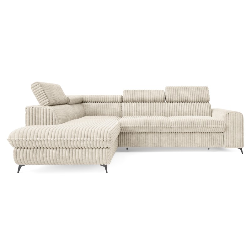 Masseno Narożnik VELISS z funkcją spania i pojemnikiem na pościel Rozkładana sofa do Salonu - Kremowy, TILIA 03