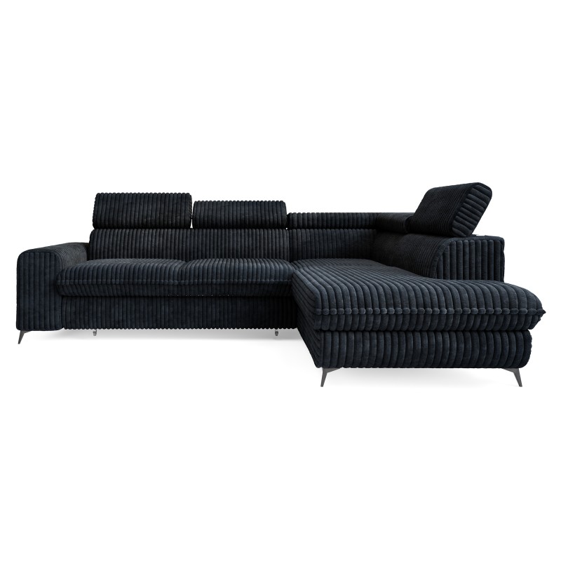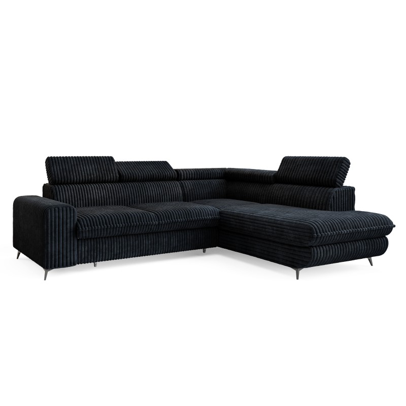 Masseno Narożnik VELISS z funkcją spania i pojemnikiem na pościel Rozkładana sofa do Salonu - Czarny, TILIA 100