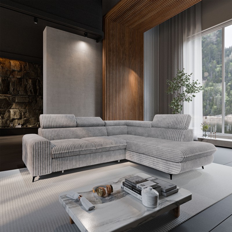 Masseno Narożnik VELISS z funkcją spania i pojemnikiem na pościel Rozkładana sofa do Salonu - Jasnoszary, TILIA 86