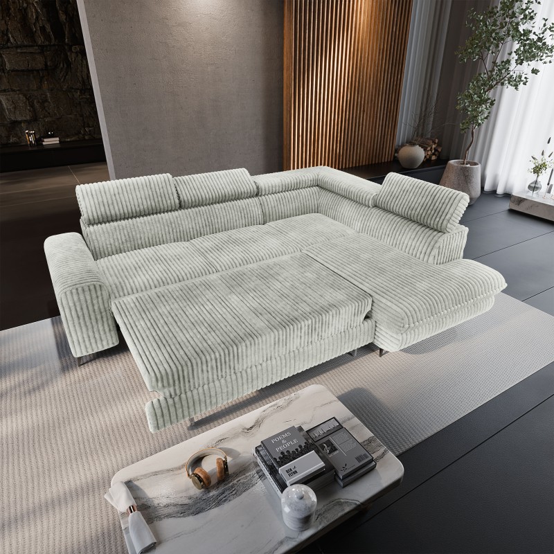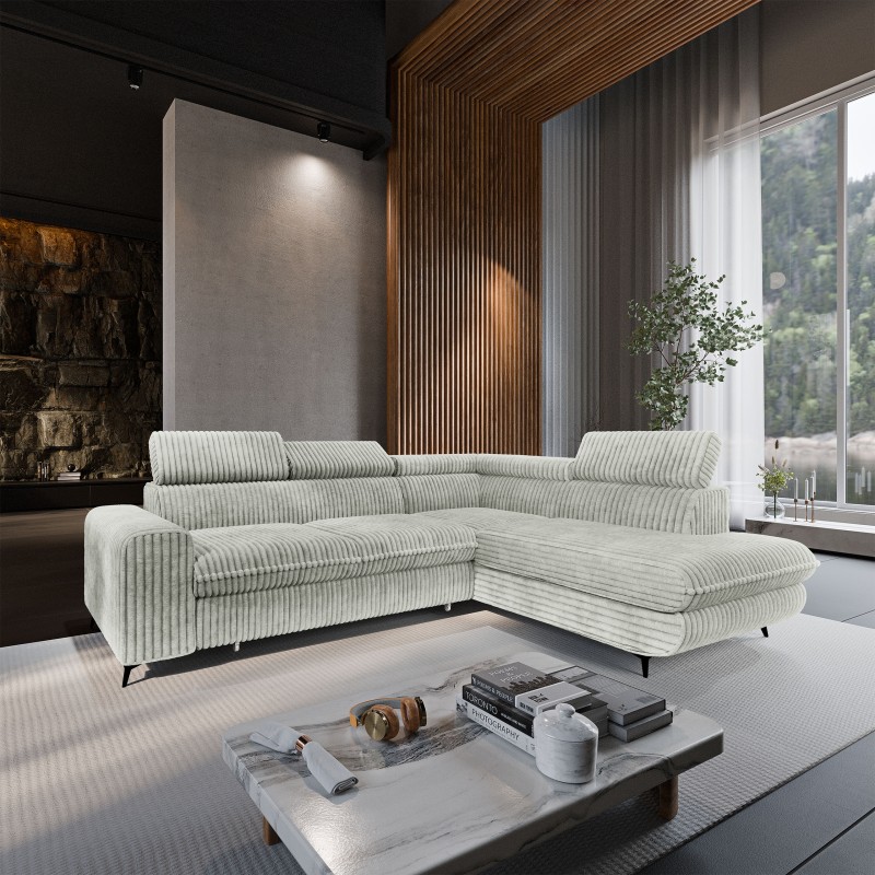 Masseno Narożnik VELISS z funkcją spania i pojemnikiem na pościel Rozkładana sofa do Salonu - Jasnoszary, TILIA 83