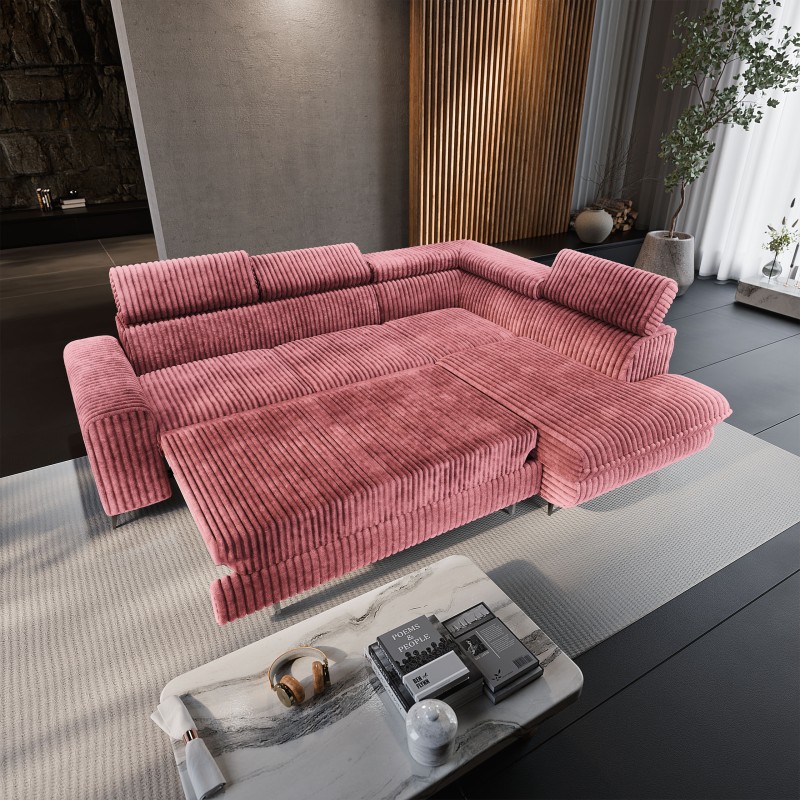 Masseno Narożnik VELISS z funkcją spania i pojemnikiem na pościel Rozkładana sofa do Salonu - Pudrowy róż, TILIA 62