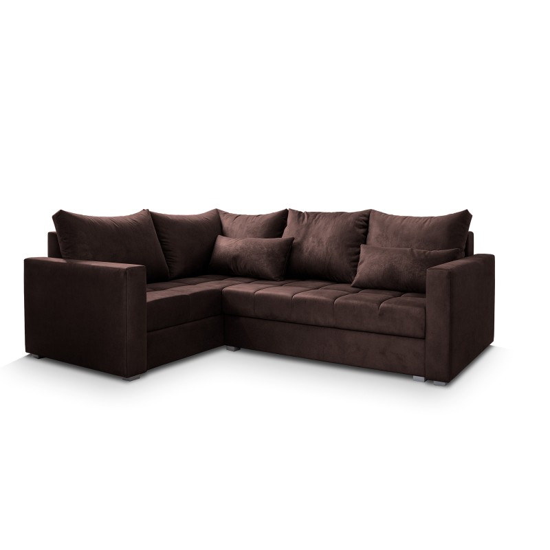 Masseno Narożnik LIRENO z funkcją spania i pojemnikiem na pościel Narozniki L, Rozkładana sofa - Brązowy, KRONOS 06