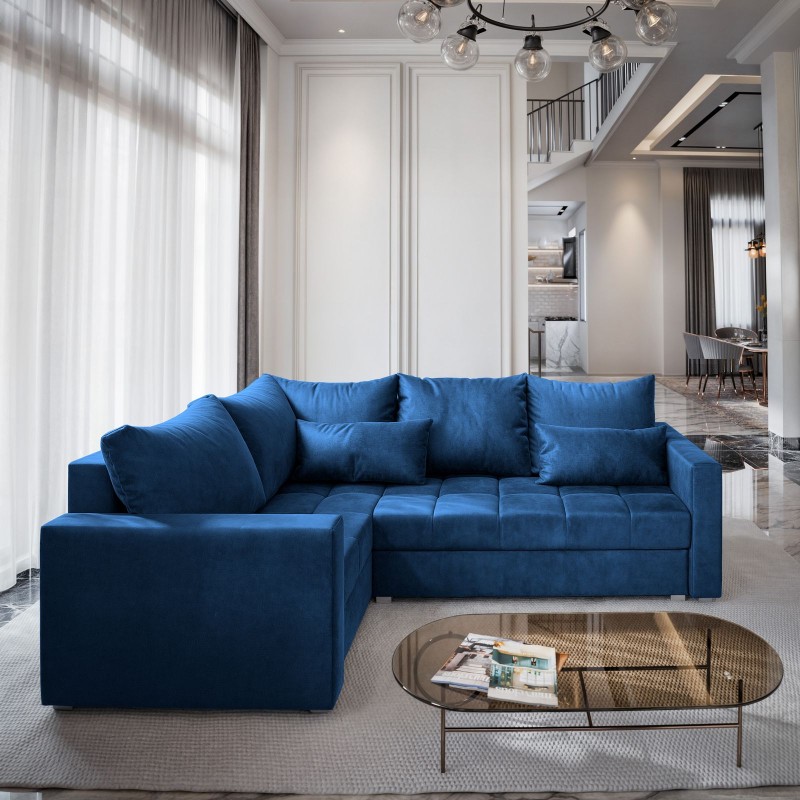Masseno Narożnik LIRENO z funkcją spania i pojemnikiem na pościel Narozniki L, Rozkładana sofa - Niebieski, KRONOS 09