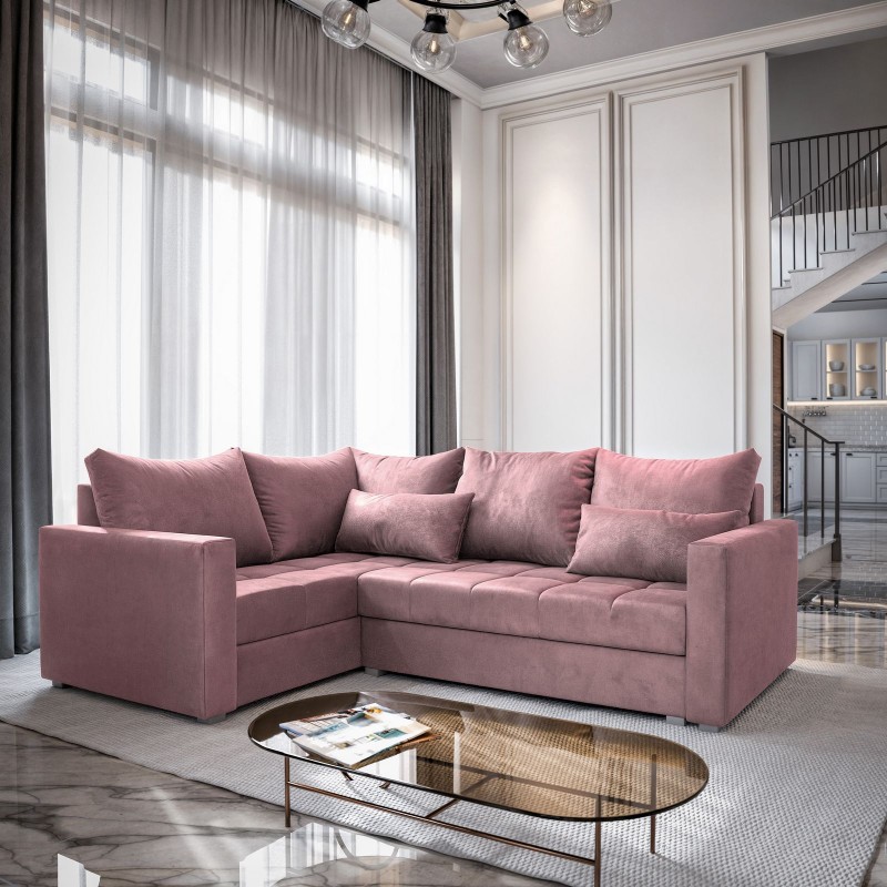 Masseno Narożnik LIRENO z funkcją spania i pojemnikiem na pościel Narozniki L, Rozkładana sofa - Pudrowy róż, KRONOS 27