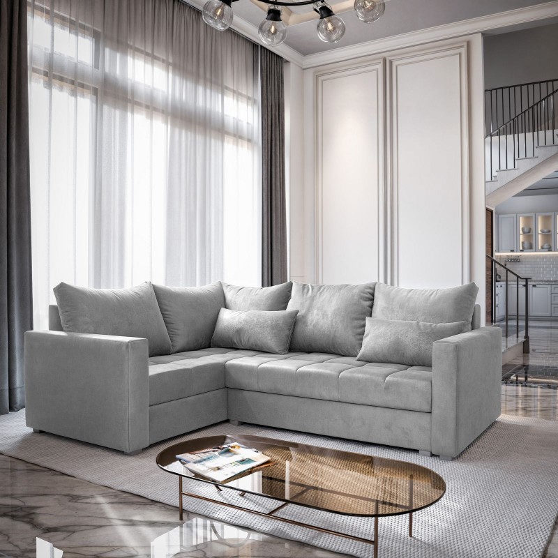 Masseno Narożnik LIRENO z funkcją spania i pojemnikiem na pościel Narozniki L, Rozkładana sofa - Jasnoszary, PAROS 05