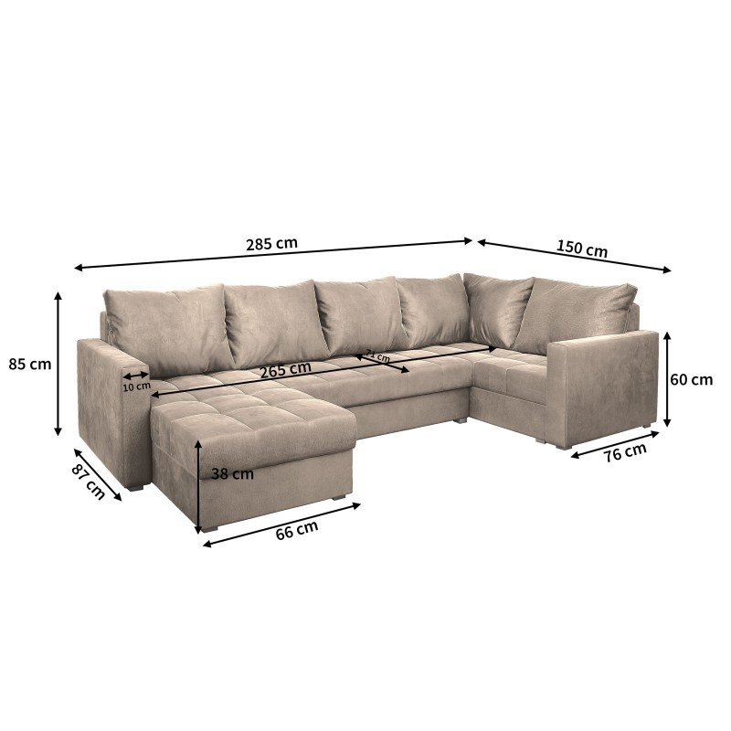 - Narożnik dostępny jest w standardowej wersji z pojemnym schowkiem pod głównym siedziskiem lub opcjonalnie z otwieraną otomaną, która pozwoli na przechowywanie większej ilości rzeczy. Dzięki temu zyskujesz dodatkową przestrzeń do przechowywania, co ułatwia utrzymanie porządku w Twoim domu.