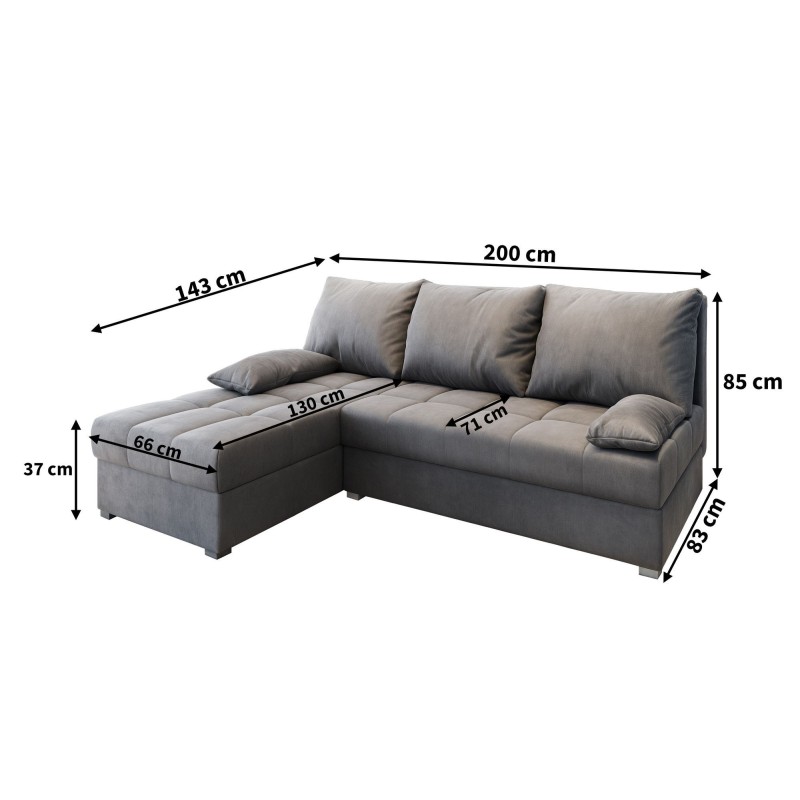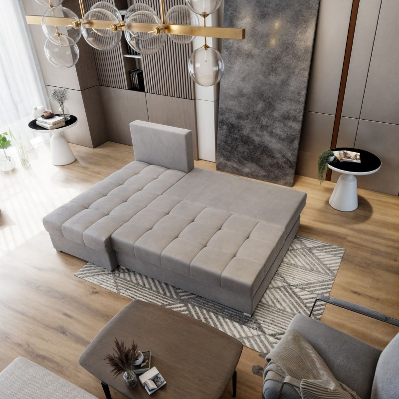 Masseno Narożnik RITA z funkcją spania i pojemnikiem na pościel Narozniki L, Rozkładana sofa - Jasnoszary, MONOLITH 84