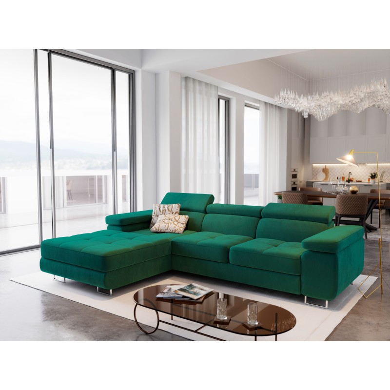 Masseno Narożnik ELMA z funkcją spania i pojemnikiem na pościel Narozniki L, Rozkładana sofa - Butelkowa zieleń, MONOLITH 37