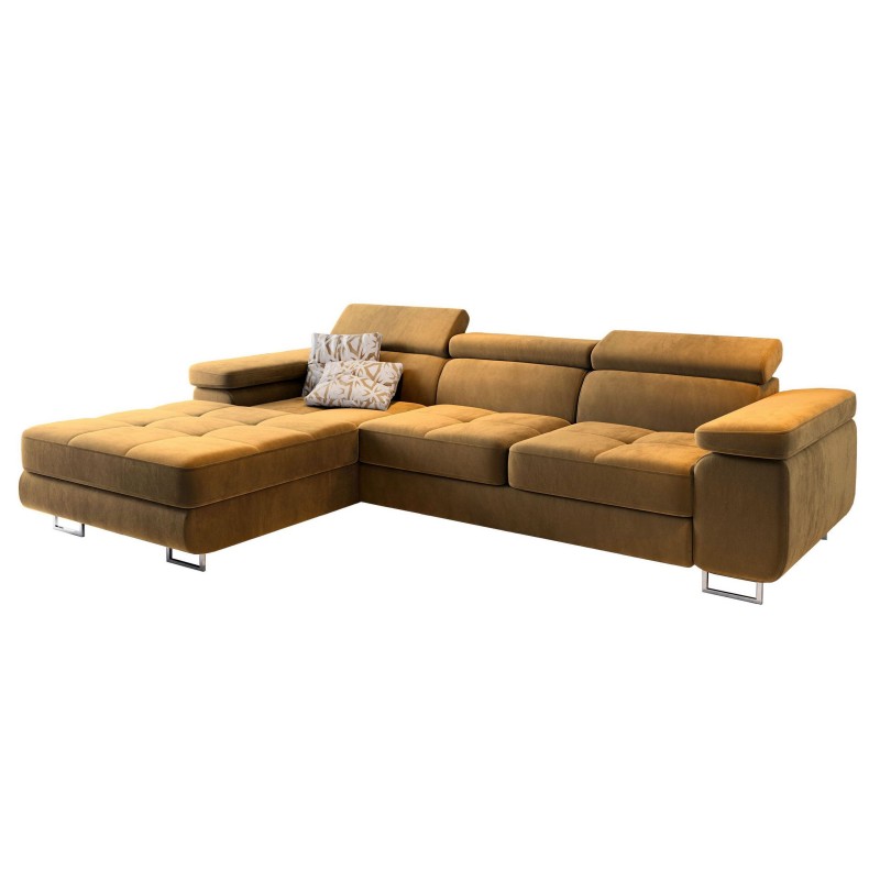 Masseno Narożnik ELMA z funkcją spania i pojemnikiem na pościel Narozniki L, Rozkładana sofa - Żółty, MONOLITH 48