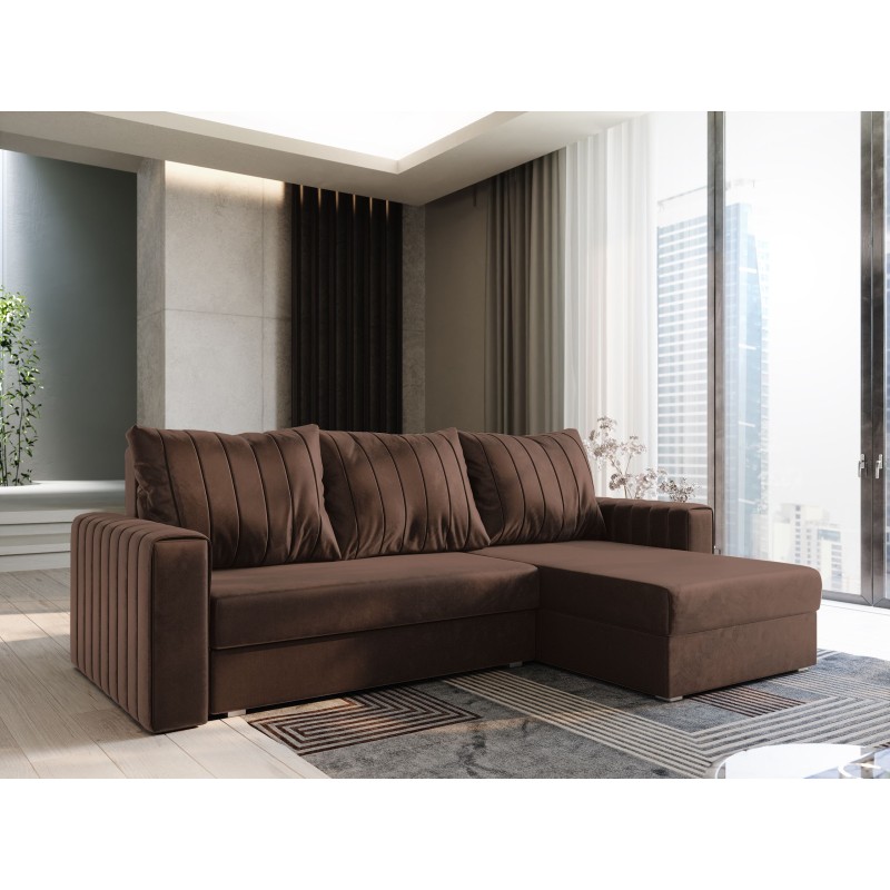 Masseno Narożnik CARL z funkcją spania i pojemnikiem na pościel Narozniki L, Rozkładana sofa - Brązowy, KRONOS 06