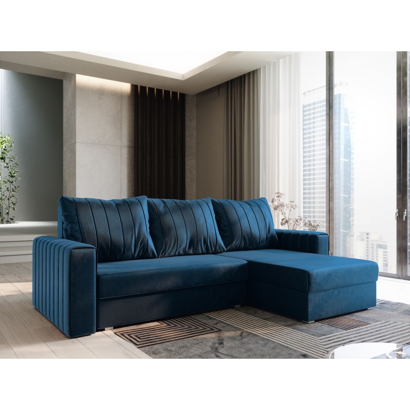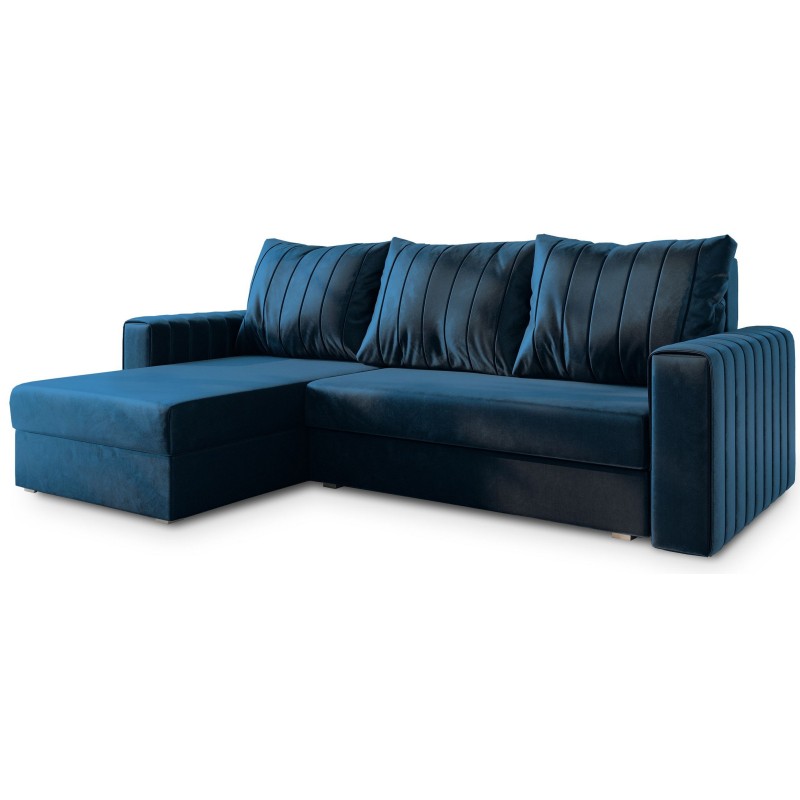 Masseno Narożnik CARL z funkcją spania i pojemnikiem na pościel Narozniki L, Rozkładana sofa - Niebieski, KRONOS 09