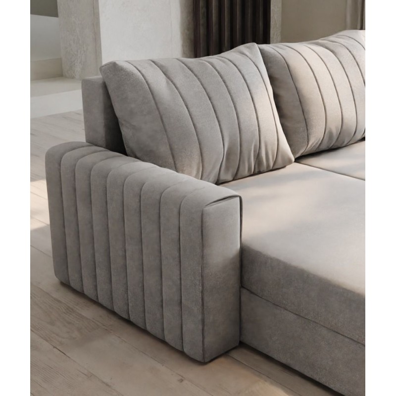 - Narożnik pięknie prezentuje się dzięki eleganckim poduszkom, z modnymi przeszyciami. Wypełniają całe oparcie mebla, co przez ich miękkość i przytulne wykonanie, przekłada się na dodatkowy komfort siedziska. Twoje plecy w pełni będą mogły się odprężyć i zaznać ulgi po całym dniu.