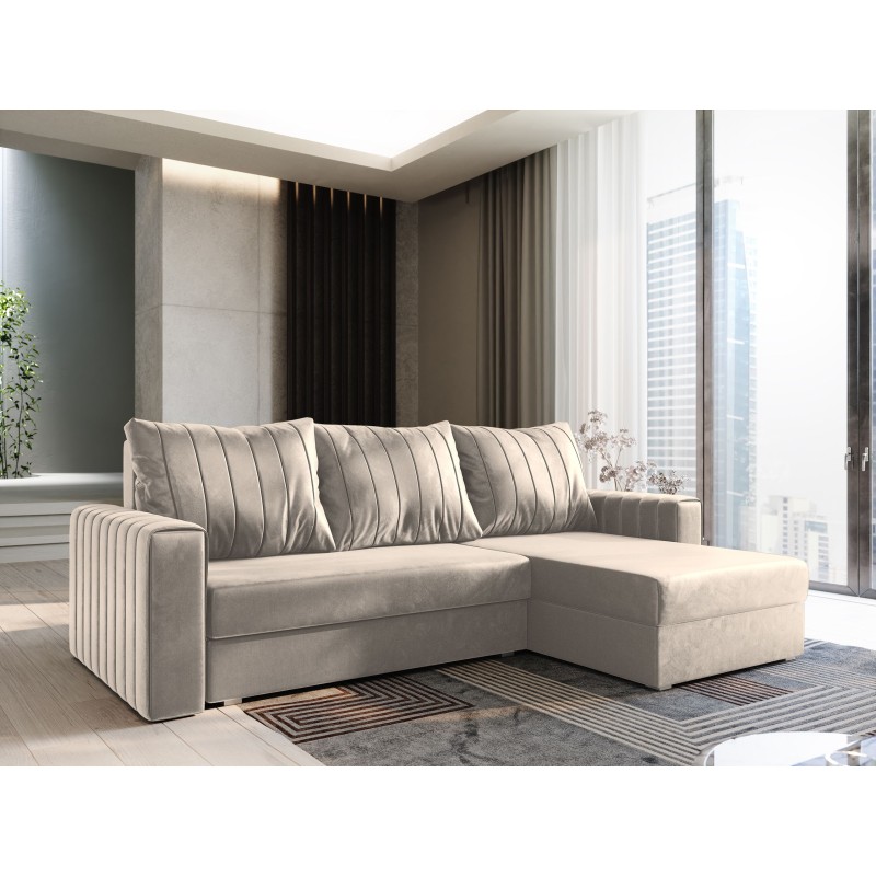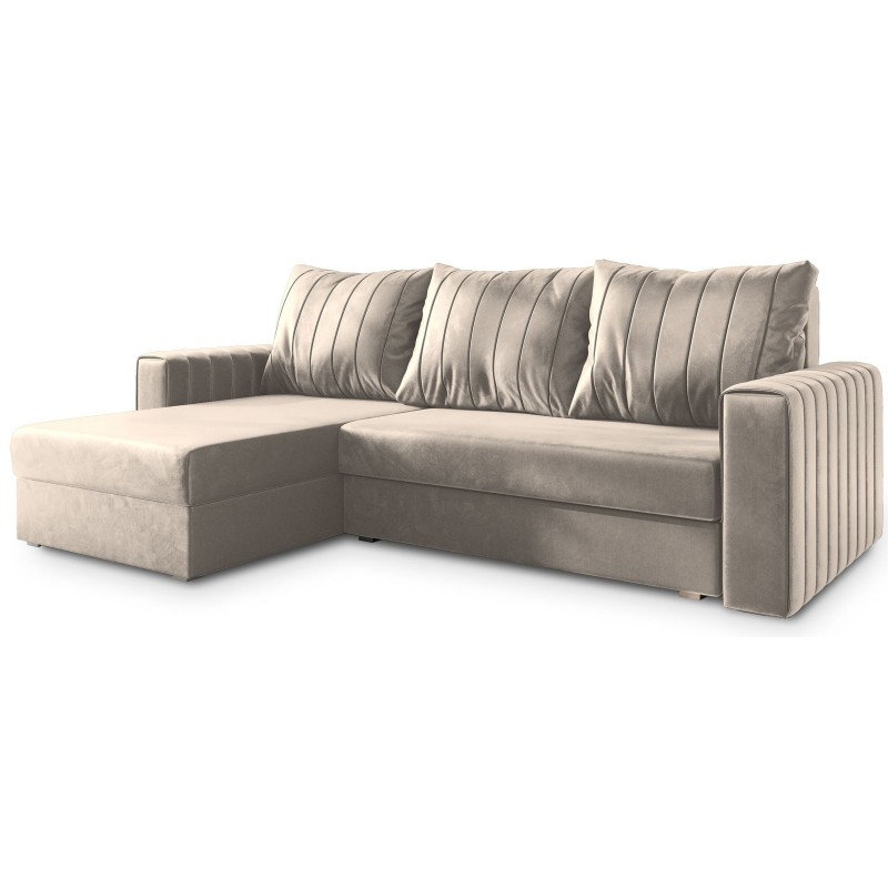 Masseno Narożnik CARL z funkcją spania i pojemnikiem na pościel Narozniki L, Rozkładana sofa - Beżowy, PAROS 02