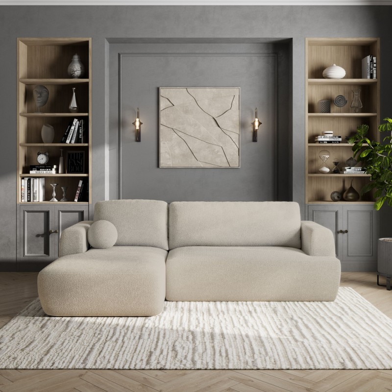 Dostępność w trzech wyjątkowych tkaninach pozwala dopasować narożnik do indywidualnych preferencji. Bukla - Now Or Never to miękkość i przytulność, sztruks - POSO dodaje strukturalnej elegancji, a velvet - Kronos wprowadza aksamitną gładkość i luksusowy wygląd.