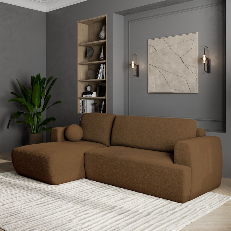 Masseno Narożnik SENTI z funkcją spania i pojemnikiem na pościel Narozniki L, Rozkładana sofa - Brąz, NOW OR NEVER 56