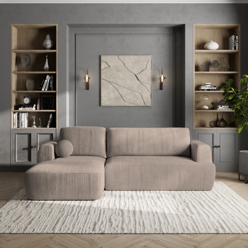 Masseno Narożnik SENTI z funkcją spania i pojemnikiem na pościel Narozniki L, Rozkładana sofa - Beżowy, POSO 02