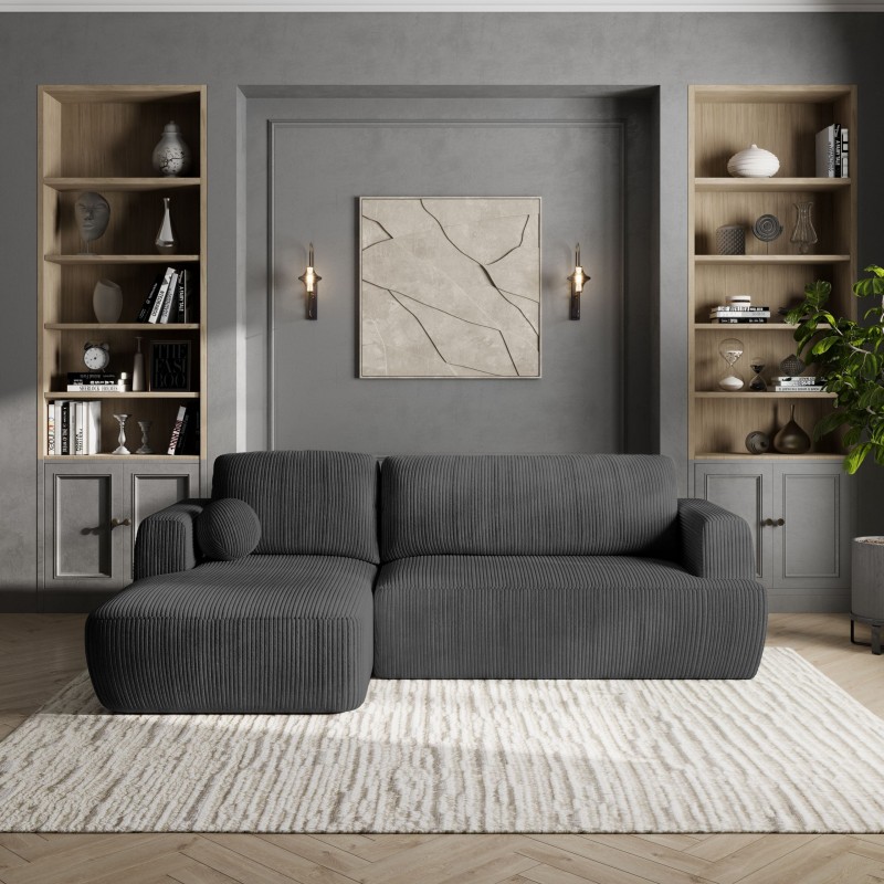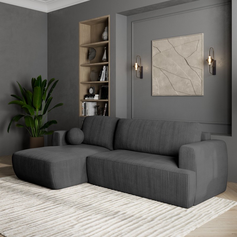 Masseno Narożnik SENTI z funkcją spania i pojemnikiem na pościel Narozniki L, Rozkładana sofa - Grafitowy, POSO 34