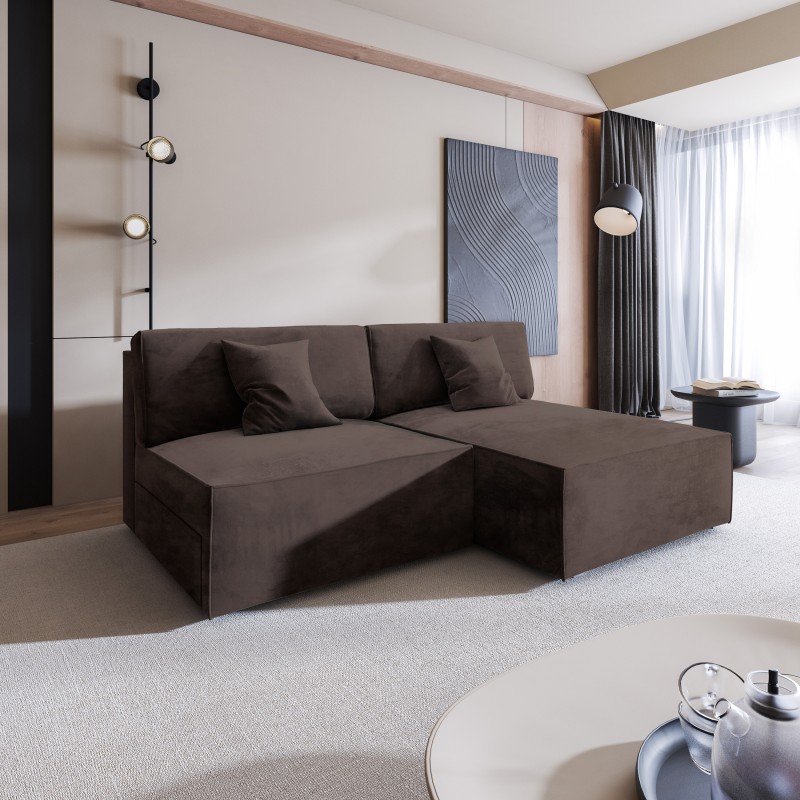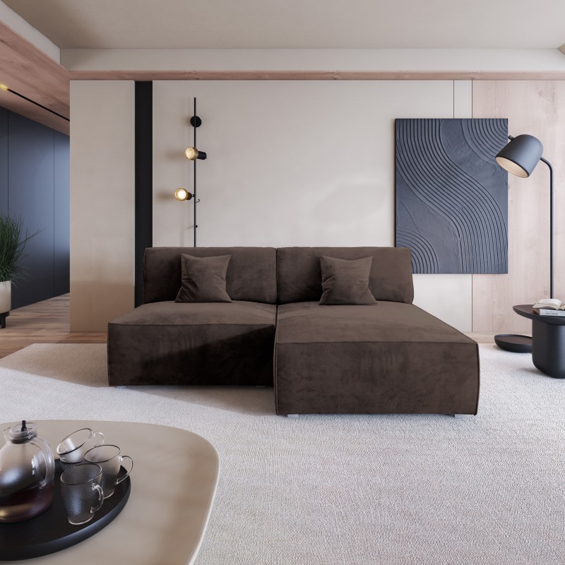 Masseno Narożnik FIORO z funkcją spania i pojemnikiem na pościel Narozniki L, Rozkładana sofa - Brązowy, MONOLITH 29