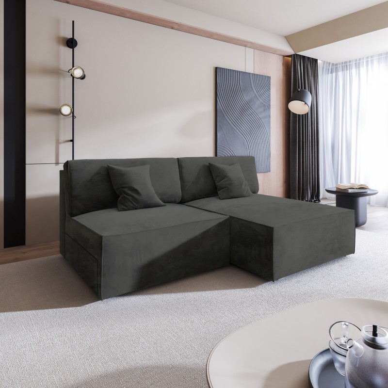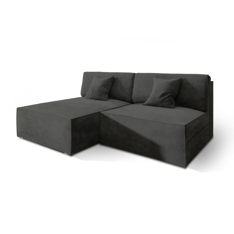 Masseno Narożnik FIORO z funkcją spania i pojemnikiem na pościel Narozniki L, Rozkładana sofa - Czarny, MONOLITH 95