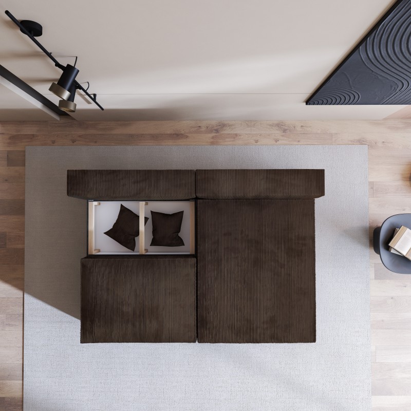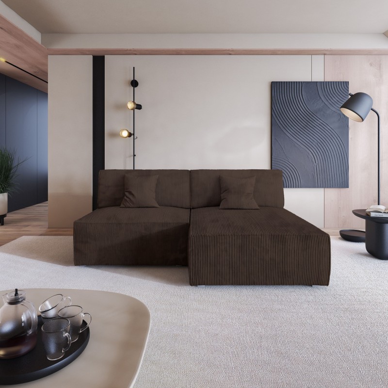 Masseno Narożnik FIORO z funkcją spania i pojemnikiem na pościel Narozniki L, Rozkładana sofa - Brązowy, POSO 06