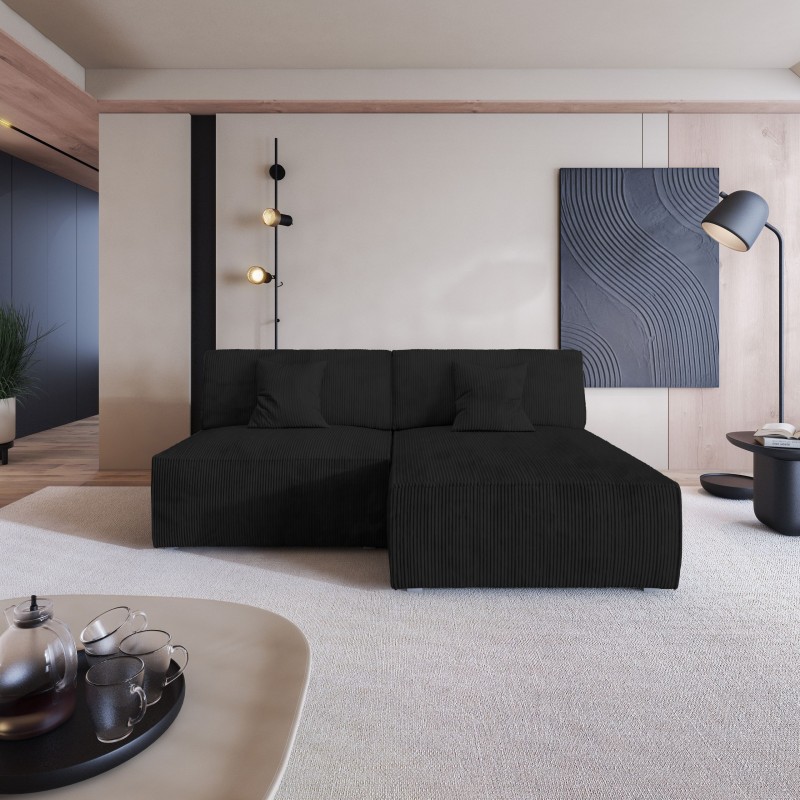 Masseno Narożnik FIORO z funkcją spania i pojemnikiem na pościel Narozniki L, Rozkładana sofa - Czarny, POSO 135