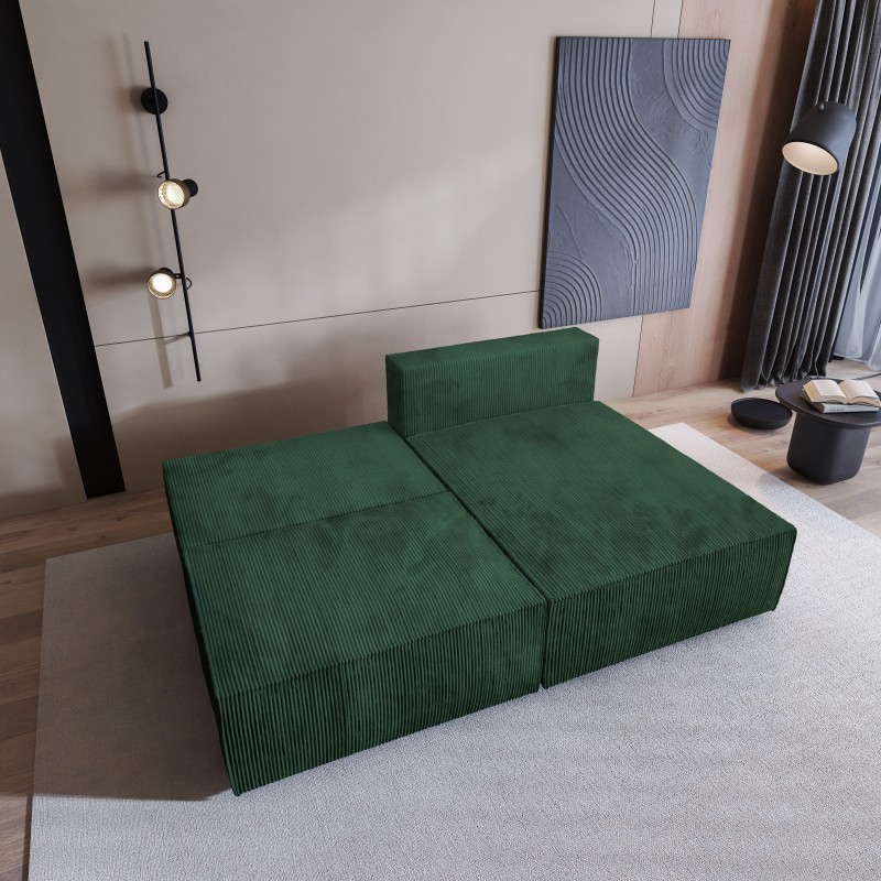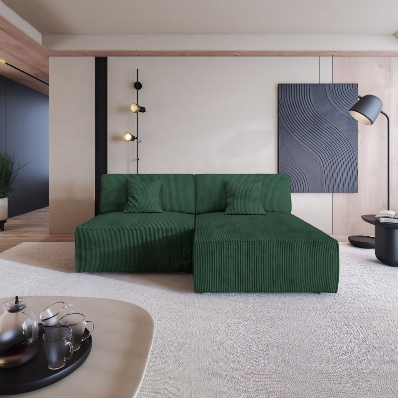 Masseno Narożnik FIORO z funkcją spania i pojemnikiem na pościel Narozniki L, Rozkładana sofa - Butelkowa zieleń, POSO 14