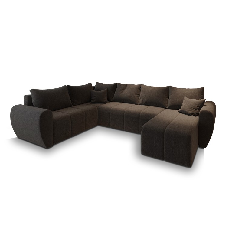 Masseno Narożnik MADISON z funkcją spania i pojemnikiem na pościel Narozniki U, Rozkładana sofa - Brązowy, SAWANA 16